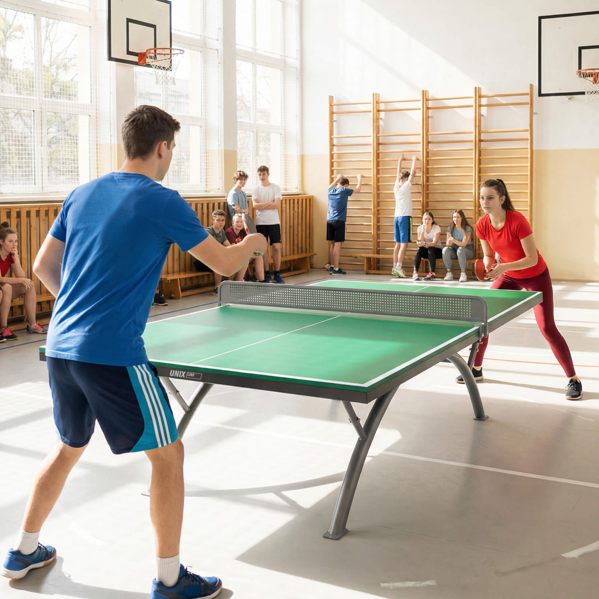 Антивандальная сетка с жестким креплением к столу изготовлена из стали толщиной 1 мм, толщина рамки составляет 10 мм. Благодаря этому, стол для пинг понга отлично подходит для эксплуатации как в частных домах и на дачах, так и в общественных местах, таких как парки, школы и кемпинги.