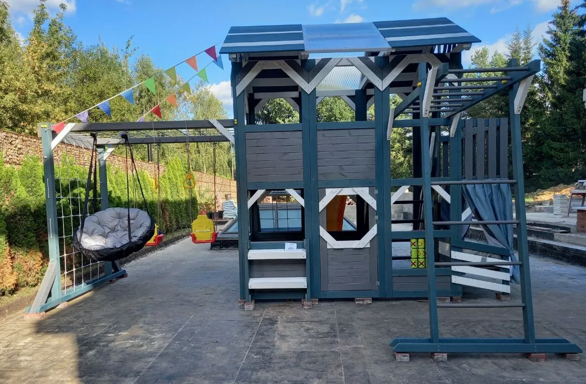 Этот комплекс сочетает в себе игровую и спортивную площадку, а также уютный детский домик с просторным игровым пространством. Он открывает двери в мир сказочных приключений для детей разного возраста (от 3 до 16 лет), развивая их физические способности и воображение.