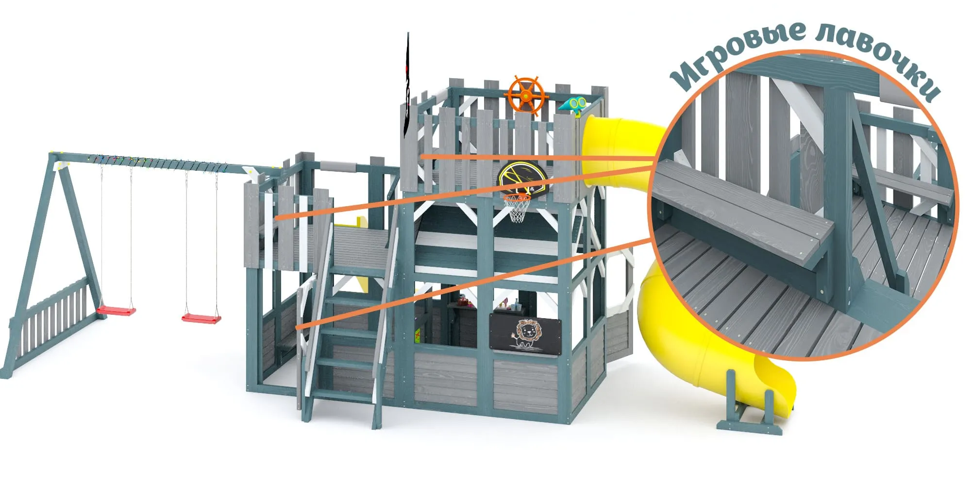 - Возможность замен и дополнений к комплексам (Вы можете выбрать из более 30 дополнительных игровых или спортивных элементов, рассчитанных на разный возраст и интересы детей, в разделе Аксессуары)