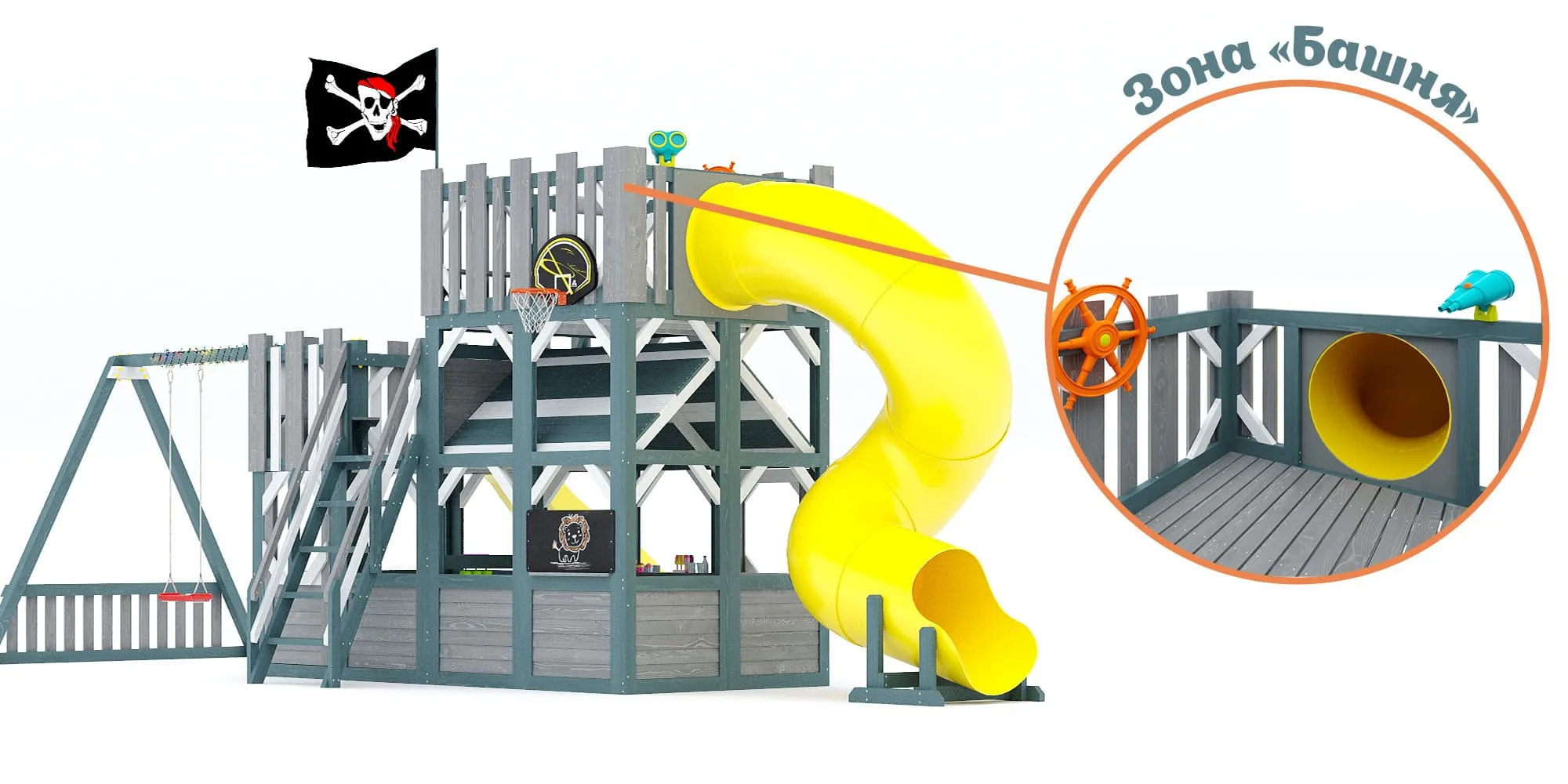 - Горка-труба с высоты платформы 2400 мм – 1 шт.