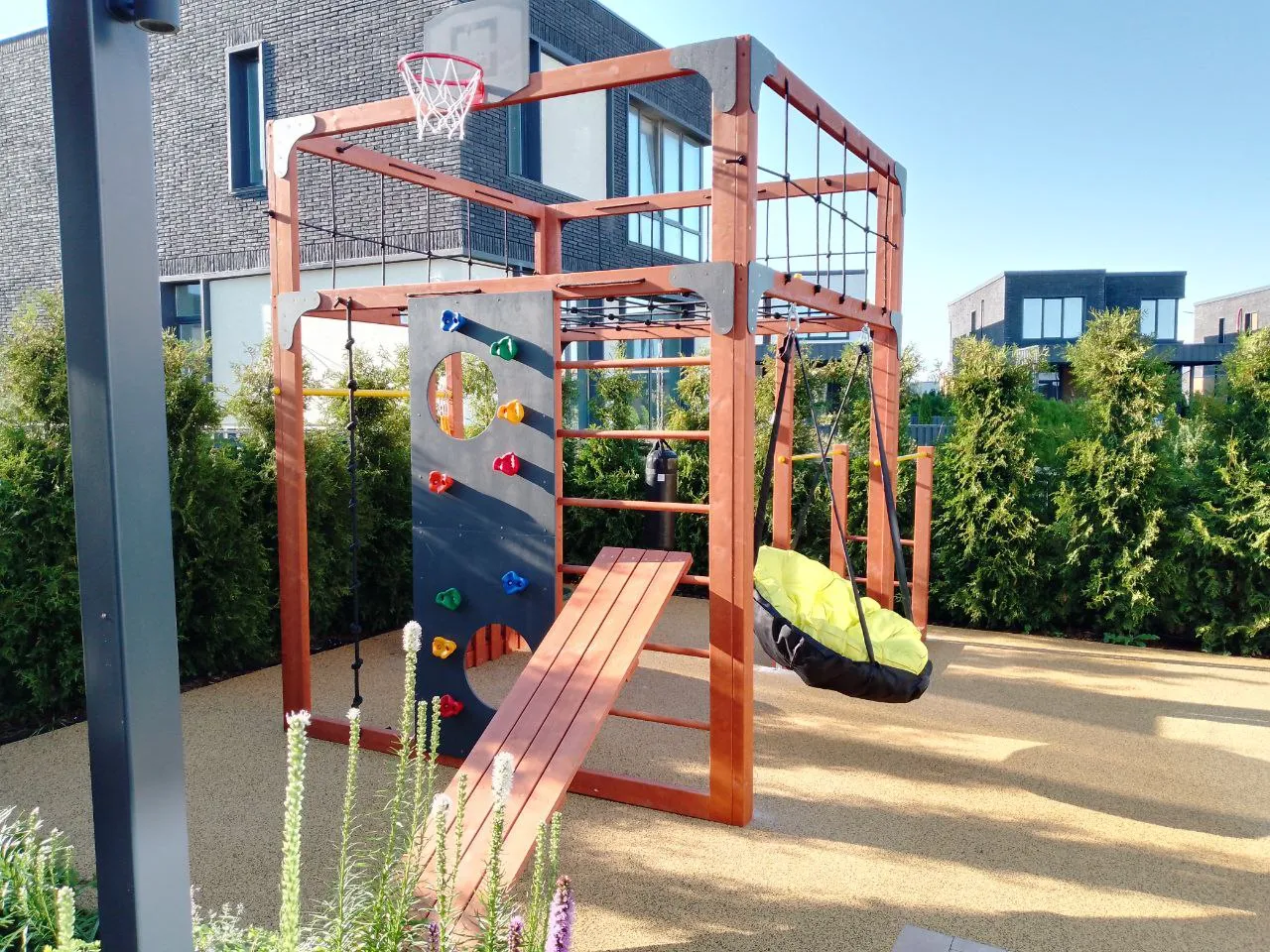 - Зона полезного хранения: предусмотрены места для аккуратного размещения самокатов, мячей и мелких игрушек, приучая детей к порядку.