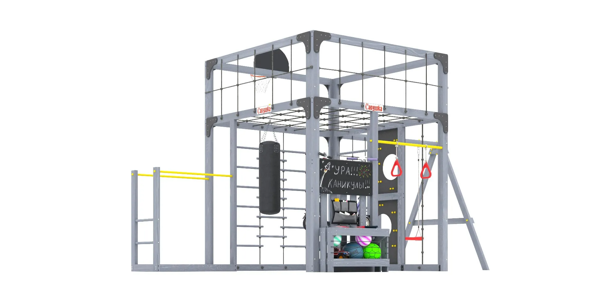 Представляем детскую игровую площадку Савушка КУБ-6 в цвете Серый — инновационный комплекс, объединяющий спорт, игру и отдых для всей семьи. Этот многофункциональный комплекс создан для гармоничного физического развития детей и активного семейного досуга.