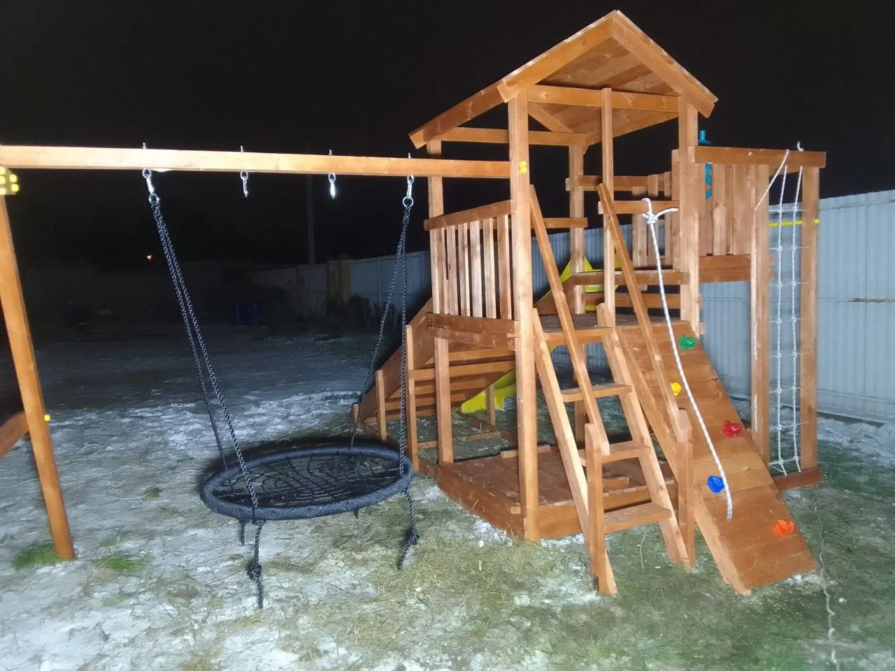 Конструкция выполнена из клеёного бруса, соответствует ГОСТ и рассчитана на долгие годы. Скруглённые углы, двойная шлифовка и пластиковые заглушки гарантируют полную безопасность ребёнка.