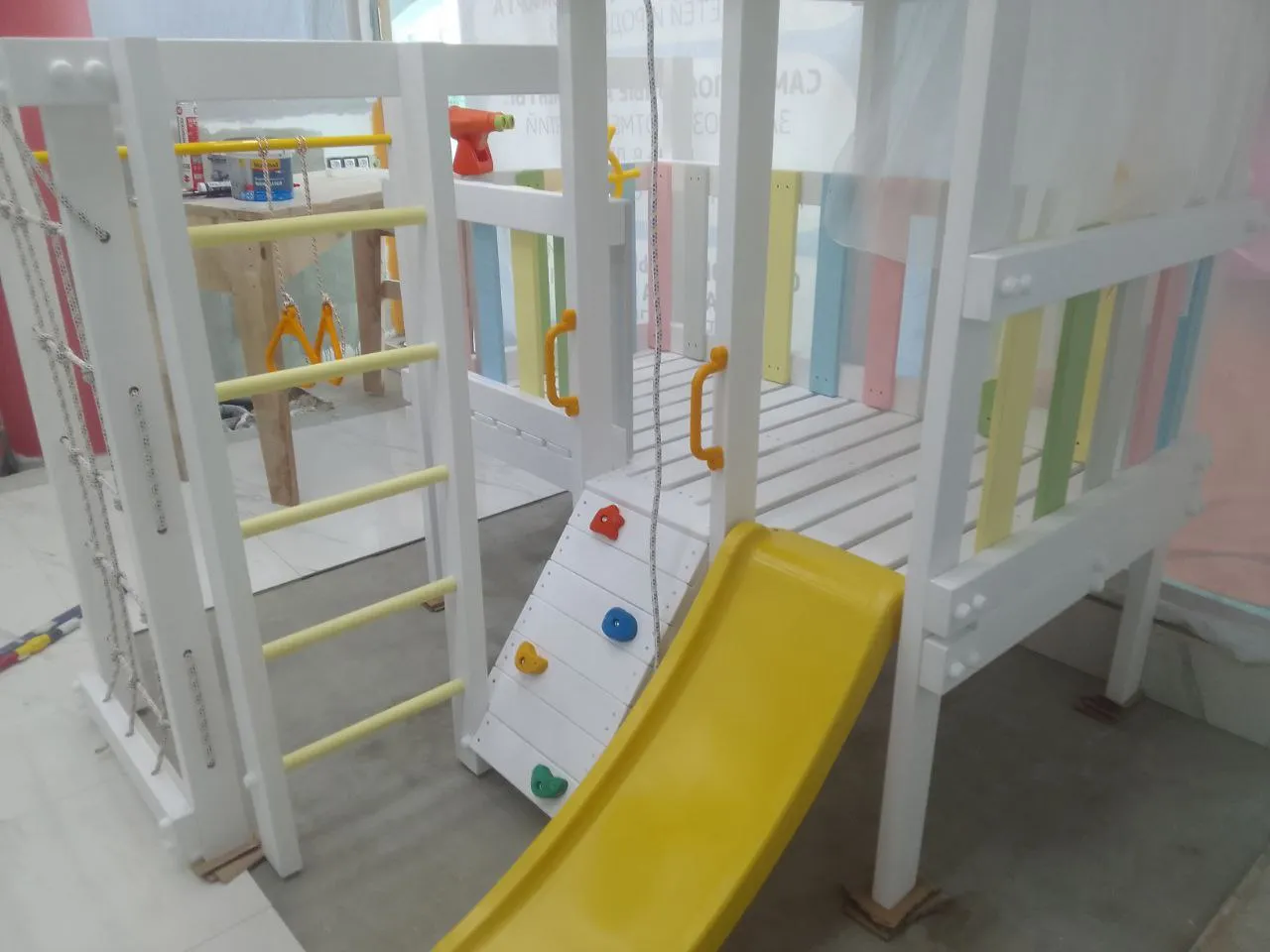 - Игровой домик с крышей и балдахином - Высота платформы 600 мм.