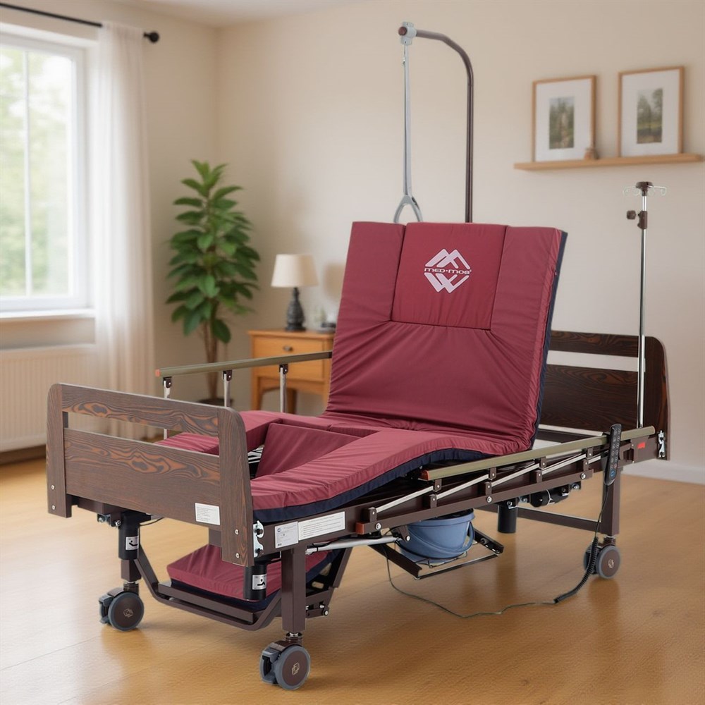Медицинская функциональная кровать Med-Mos YG-3 — это современное решение для ухода за пациентами. Электрическая модель с боковым переворачиванием, противопролежневой функцией, туалетным устройством и функцией «кардиокресло». Кровать выполнена в стильном дизайне с отделкой ЛДСП венге, что делает её не только практичной, но и эстетически привлекательной.