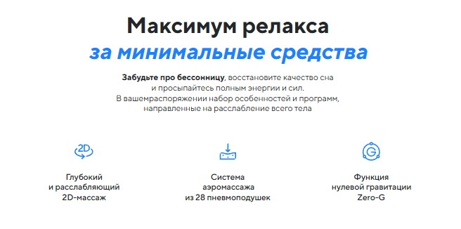 | Ручные программы | Стоп, Разминание, Постукивание, Разминание и постукивание, Шиацу, Ударная, Ударная 2D, Разминание, Разминание и ударная, Постукивание, Разминание и постукивание 2D |
