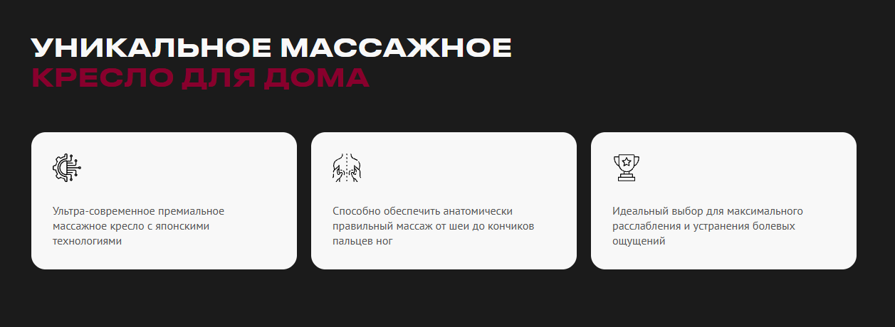 - Массаж в сочетании с инфракрасным прогревом и воздействием массажных подушек обеспечивает эффективную проработку мышц, снятие напряженности и зажимов
