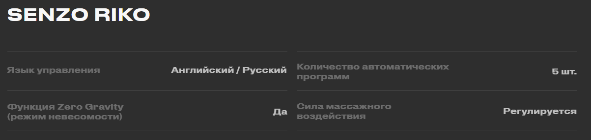 | Зоны массажа | Шея / Спина / Поясница / Плечи / Руки / Бедра / Ягодицы / Икры / Стопы |