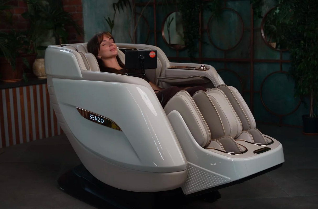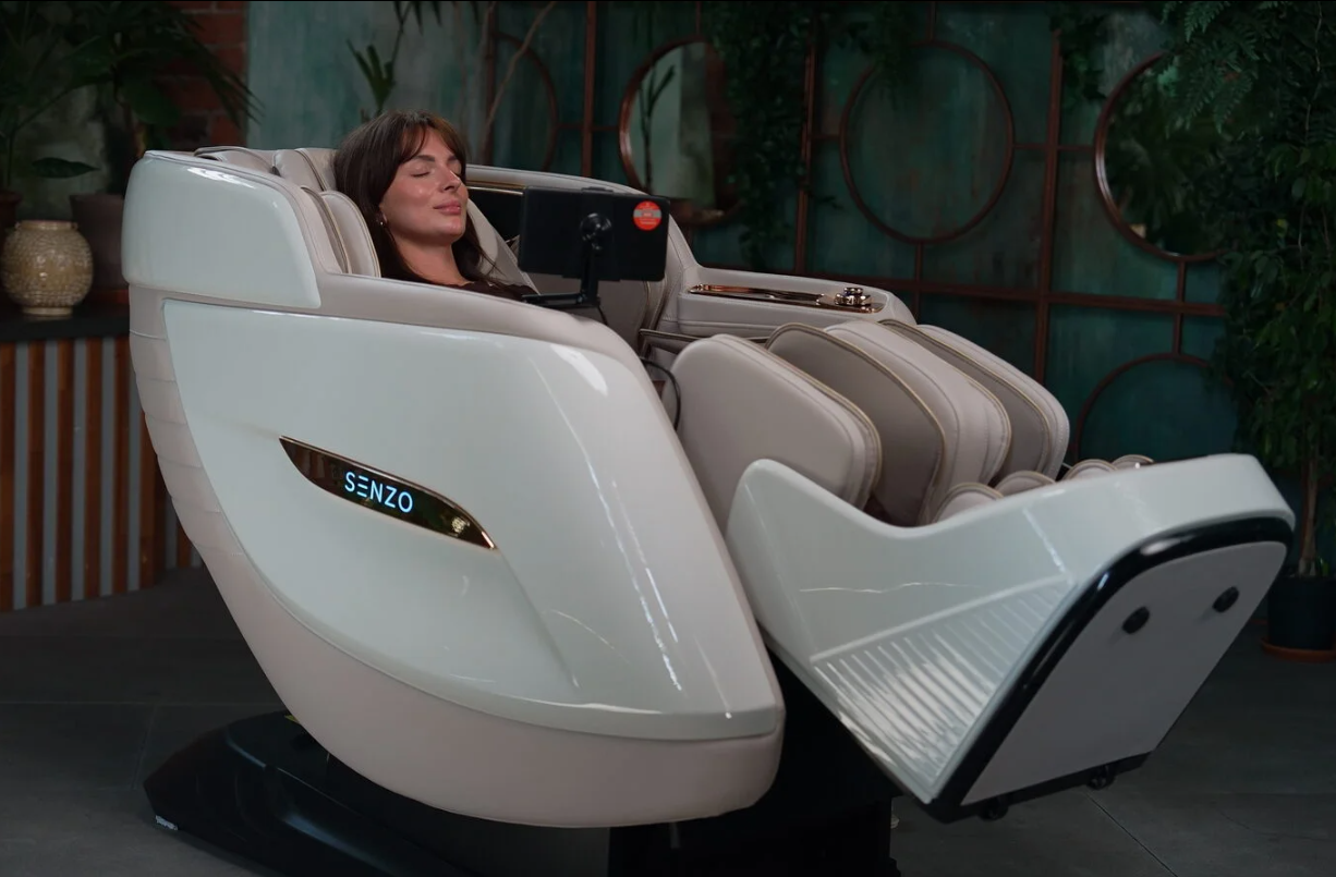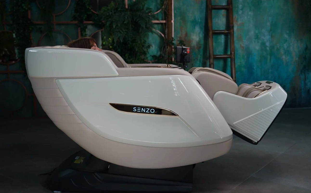 В отличие от обычных кресел с одним механизмом, перемещающимся по каретке вверх и вниз, Senzo Unkai оснащено двумя независимыми механизмами (4D в области плеч и спины и 3D в области ягодиц), которые оборудованы шестью массажными роликами.