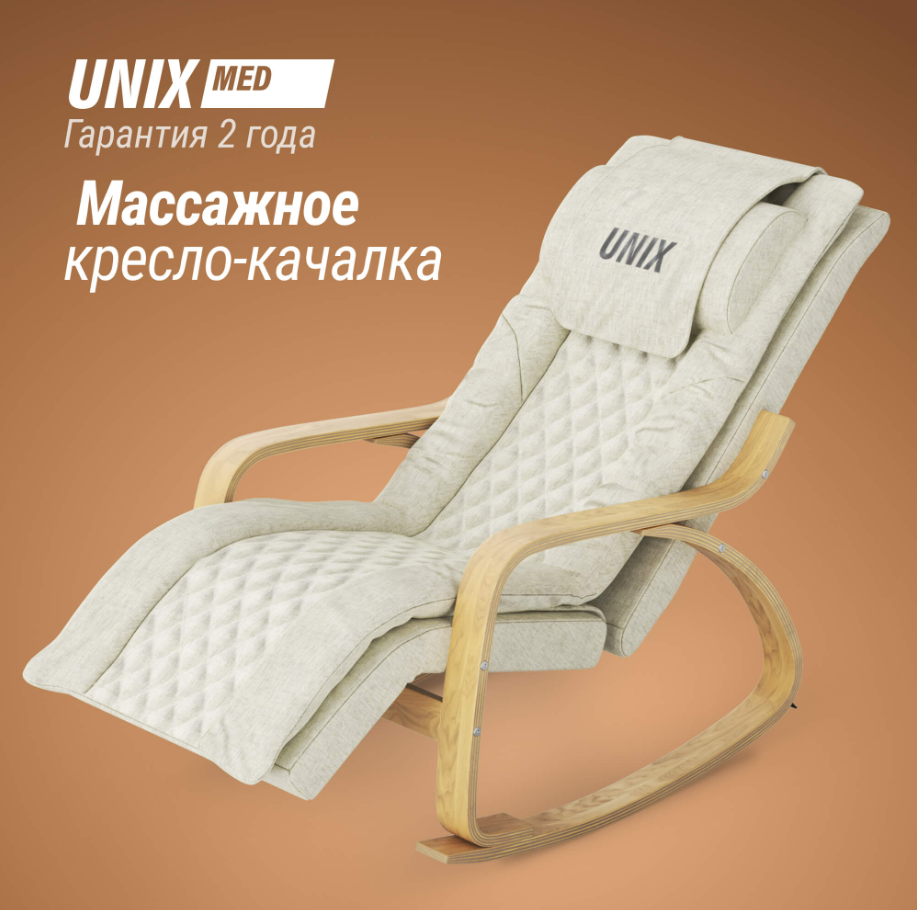 Массажное кресло-качалка UNIX Med Avola с роликовым массажером — идеальное решение для тех, кто стремится к гармонии тела и духа, хочет расслабиться после долгого рабочего дня и восстановить силы. Кресло станет вашим личным оазисом спокойствия и комфорта дома, где каждая деталь продумана для максимального удовольствия. Cовмещает в себе массажное кресло и кресло-качалку