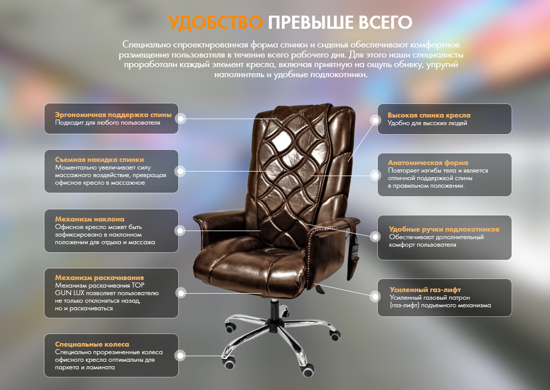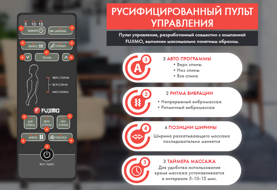 - В конструкции используется японский массажный механизм компании FUJIMO