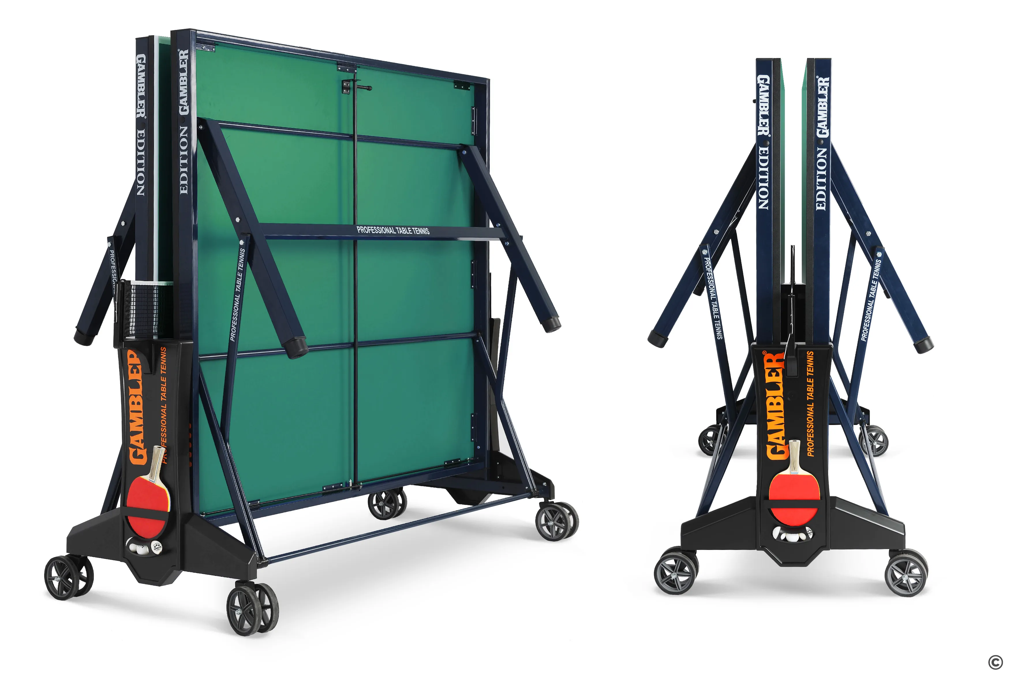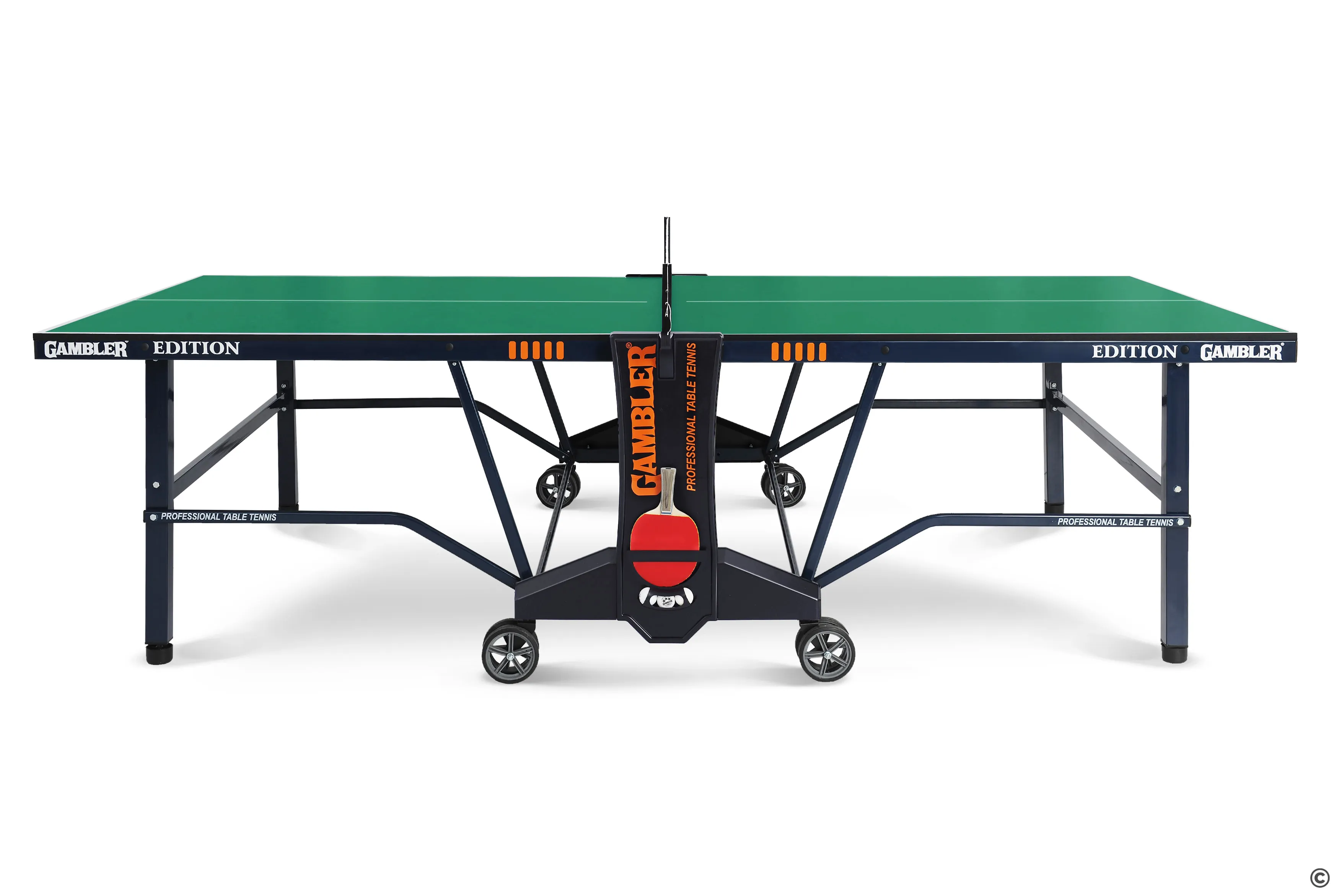 Надежный стол для организации игры в помещении. Подойдет для теннисных клубов, проведения взрослых и юниорских соревнований и просто для организации детского и семейного досуга. Конструкция оснащается уникальной системой складывания с элементами, фиксирующими теннисный стол в сложенном и разложенном виде. Высота боковых опор регулируется — для комфорта при использовании на любой поверхности, даже неровной. Прорезиненные колеса гарантируют бережное маневрирование.