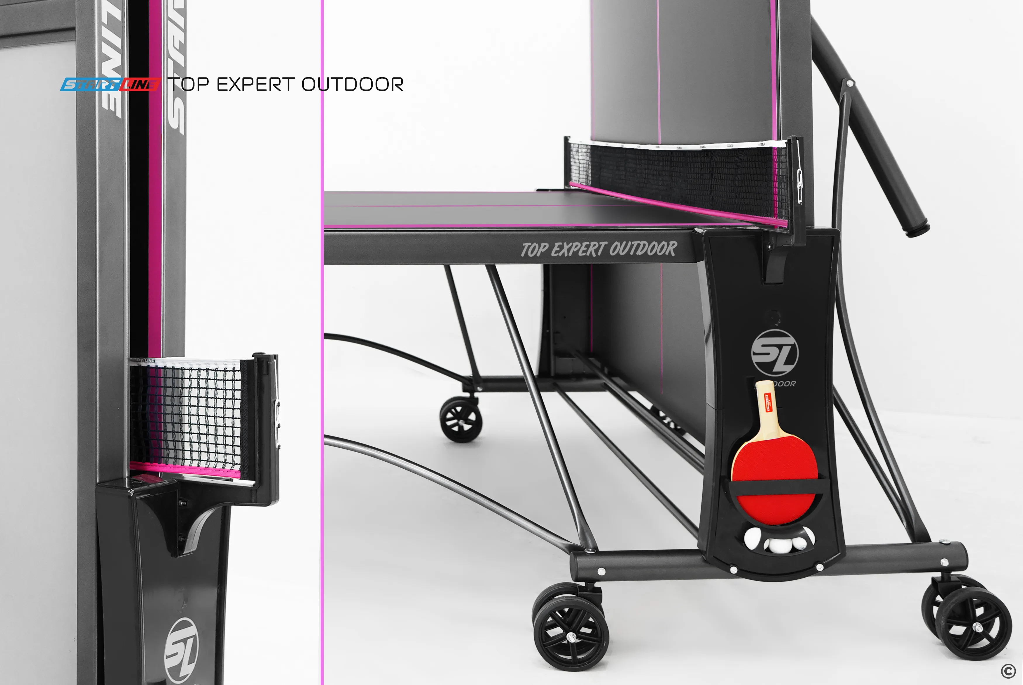 Современные методы построения теннисного стола, позволили усовершенствовать дизайн. Обновленная модель TOP Expert 6 Всепогодный Black отличается уникальным сочетанием стильного черного цвета столешницы и контрастной фиолетовой разметки.