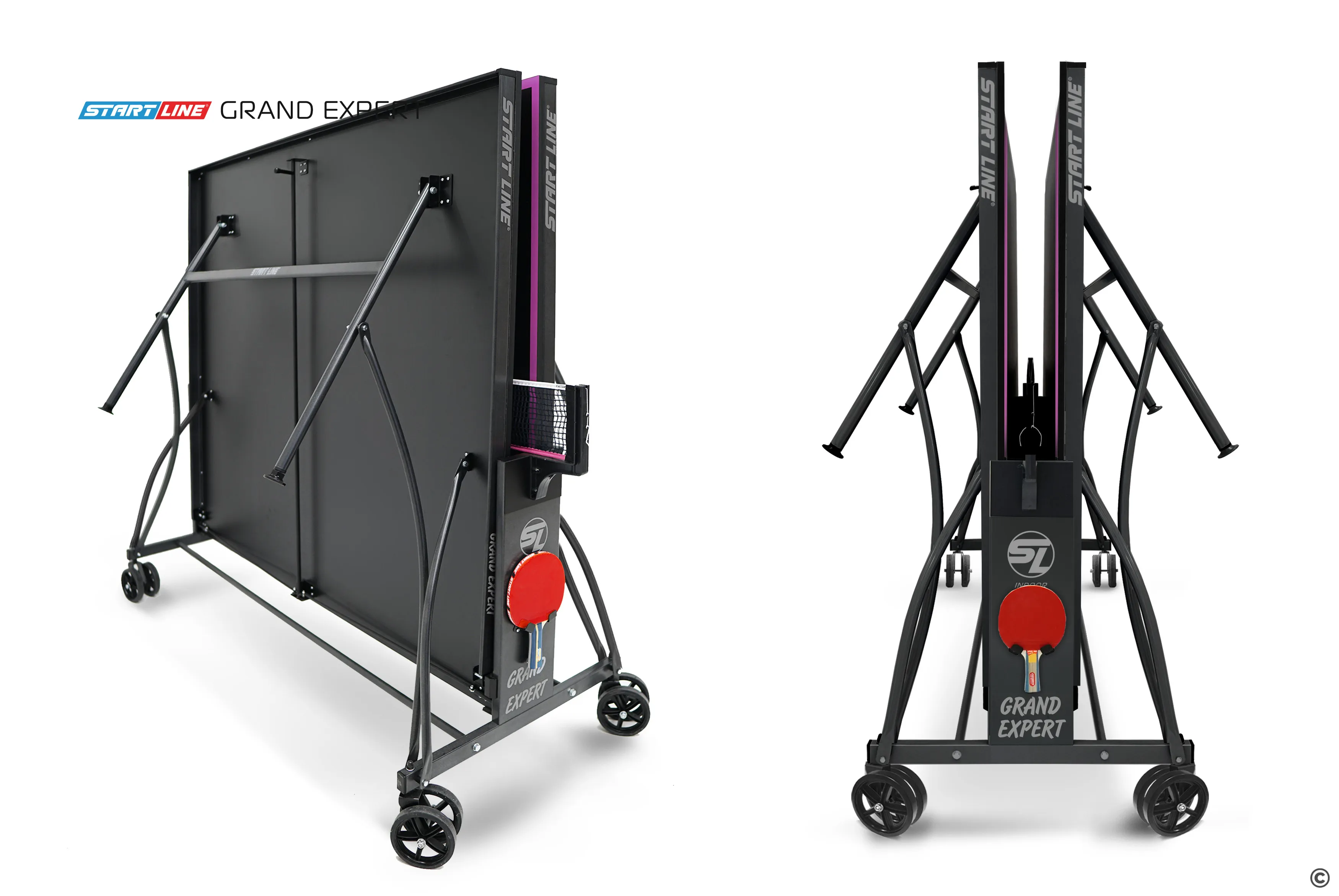Модель Grand Expert Black укомплектована удобным держателем для ракеток и мячей и встроенной сеткой, не требующей демонтажа при складывании. Начать игру можно в любое время, ведь все необходимое оборудование всегда под рукой.