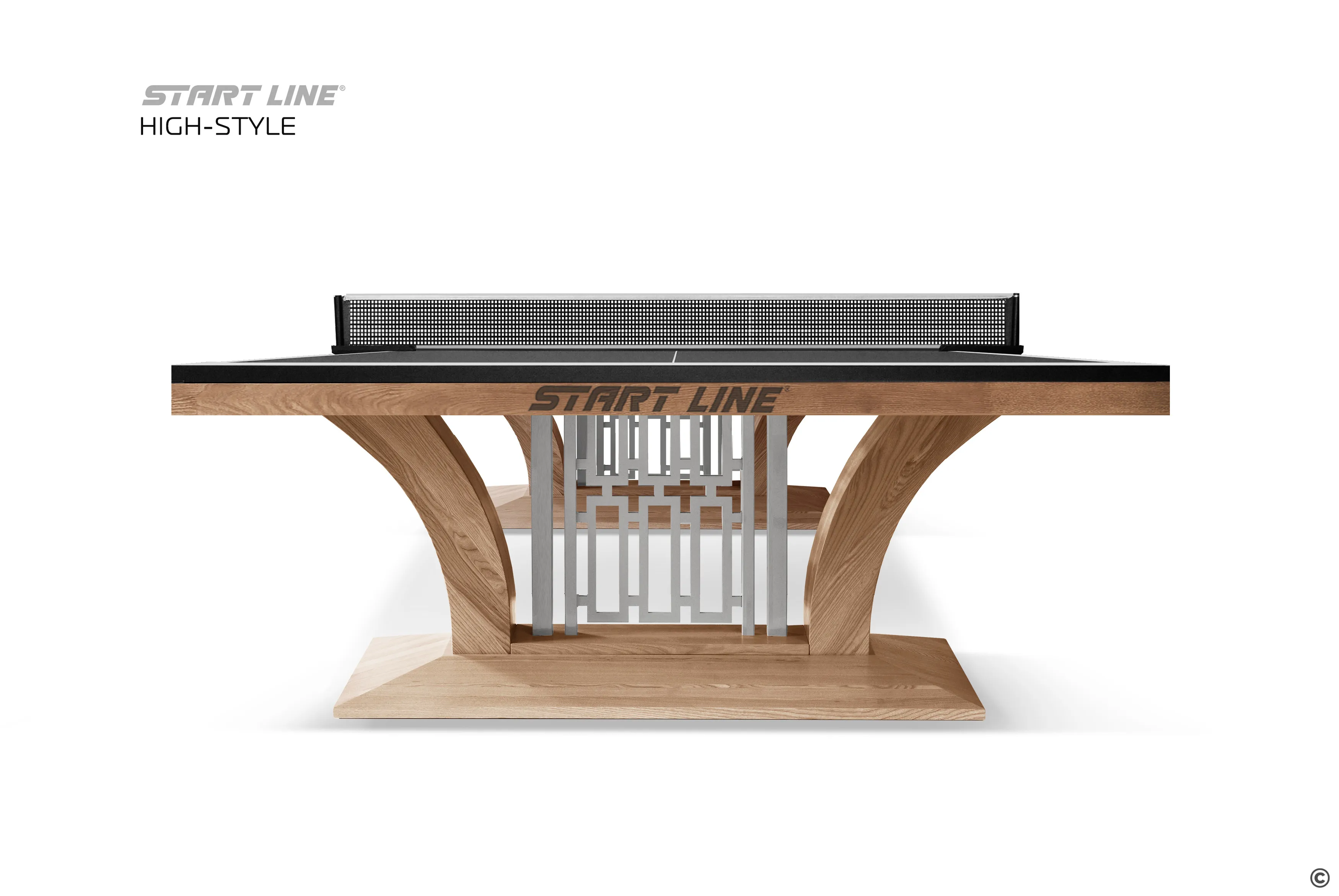 Основание теннисного стола из высококачественного ясеня, декорированное ажурной сеткой, делает теннисный стол High-Style настоящим произведением искусства, создавая неповторимый образ стола, который подчеркнет индивидуальность любого игрового пространства.