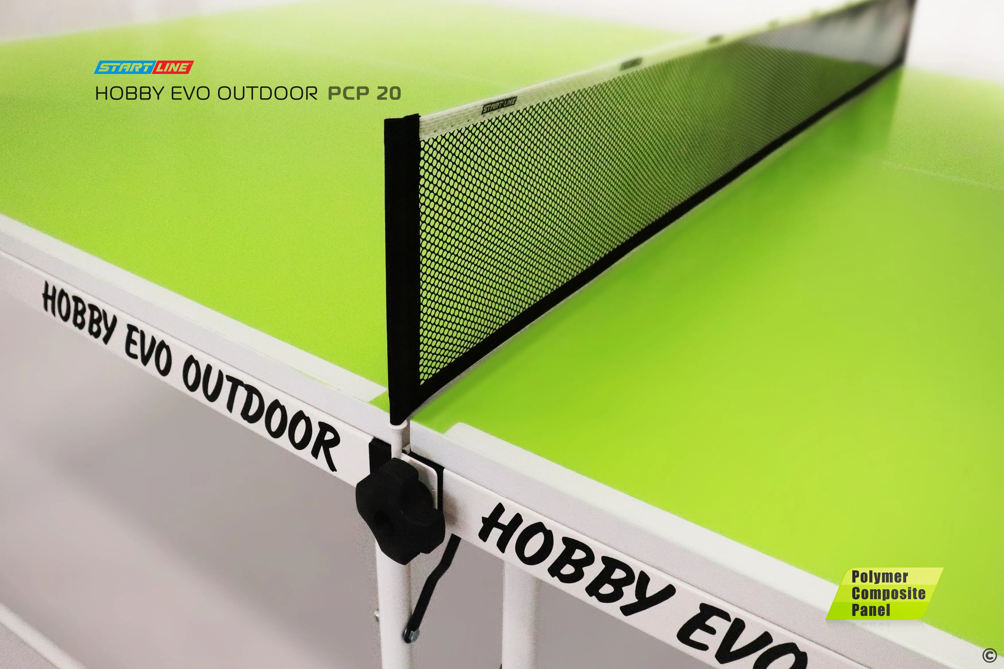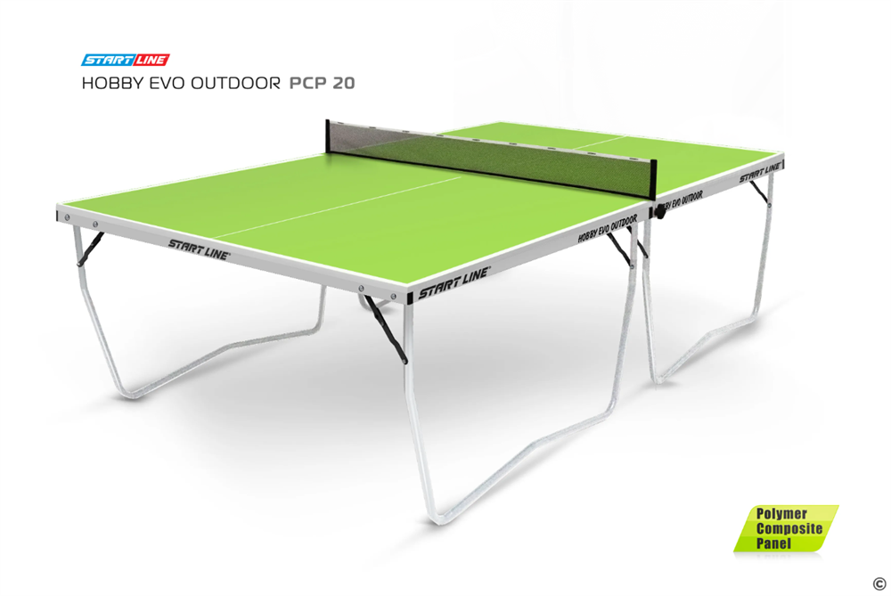 Первой моделью с новой столешницей PCP 20 мм стал теннисный стол HOBBY EVO OUTDOOR PCP 20. Преимущества Polymer Composite Panel ( PCP) - Материал РСР абсолютно устойчив к атмосферным явлениям, стол может эксплуатироваться на открытых площадках от -25°С до +35°С и высокой влажности. Панель РСР дает хороший отскок 21 см и сохраняет высокие игровые характеристики при длительном использовании на открытых площадках. Конструкция стола с панелью PCP имеет усиленную раму, которая задает дополнительную жесткость столу, закрепляет игровое поле и исключает «эффект барабана». Кромка столешницы толщиной 1 мм (вместо стандартной  0,45 мм) надежно защищает торец от повреждений. При толщине столешницы в 20 мм, стол остается легким и мобильным, что важно при его перемещении и транспортировке.