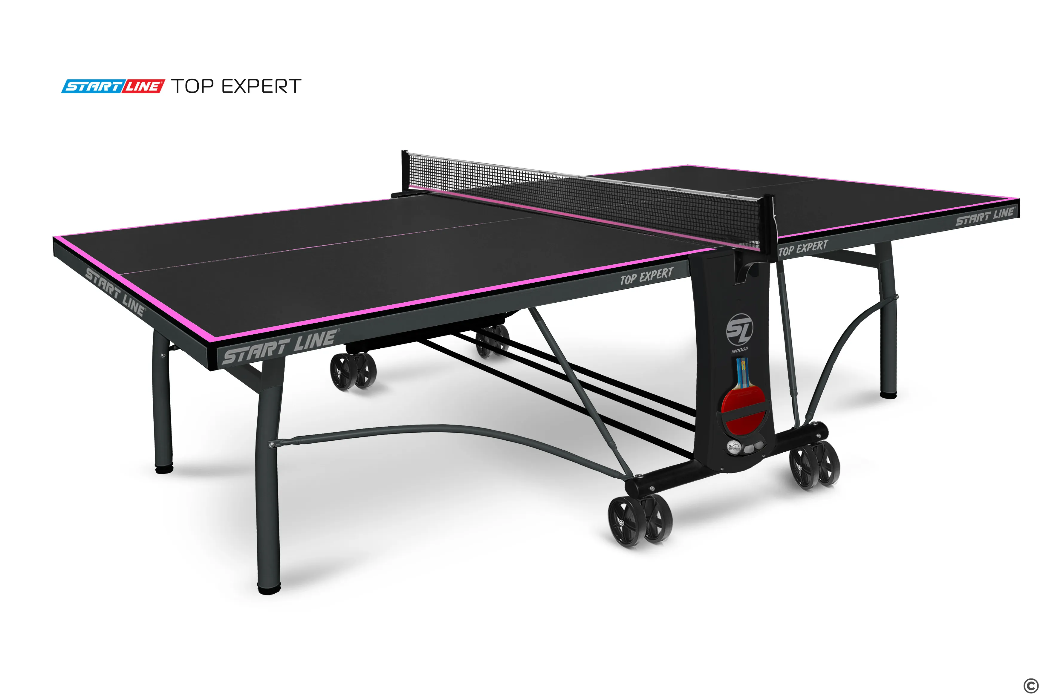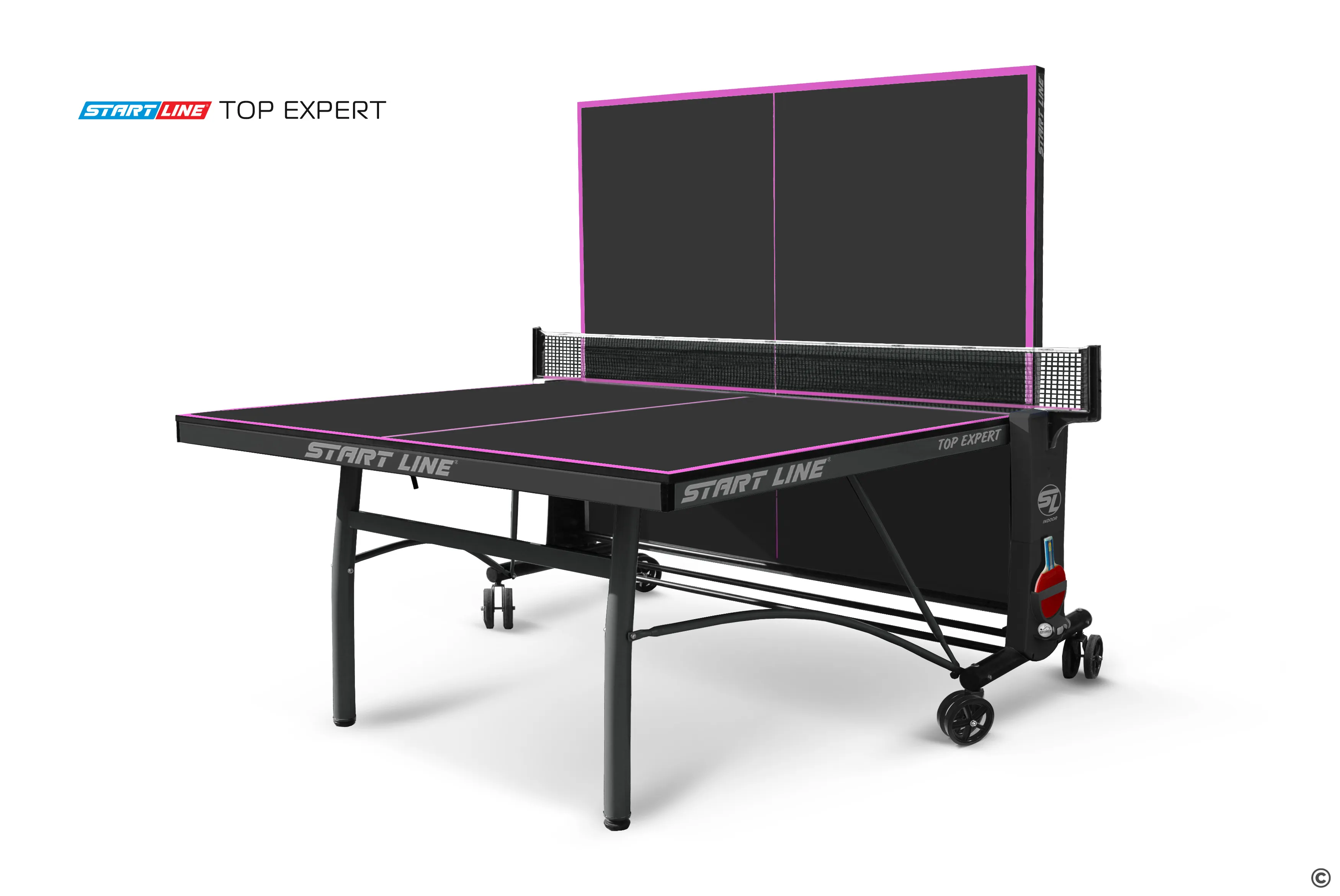 Современные методы построения теннисного стола, позволили усовершенствовать дизайн. Обновленная модель TOP Expert Black отличается уникальным сочетанием стильного черного цвета столешницы и контрастной фиолетовой разметки.