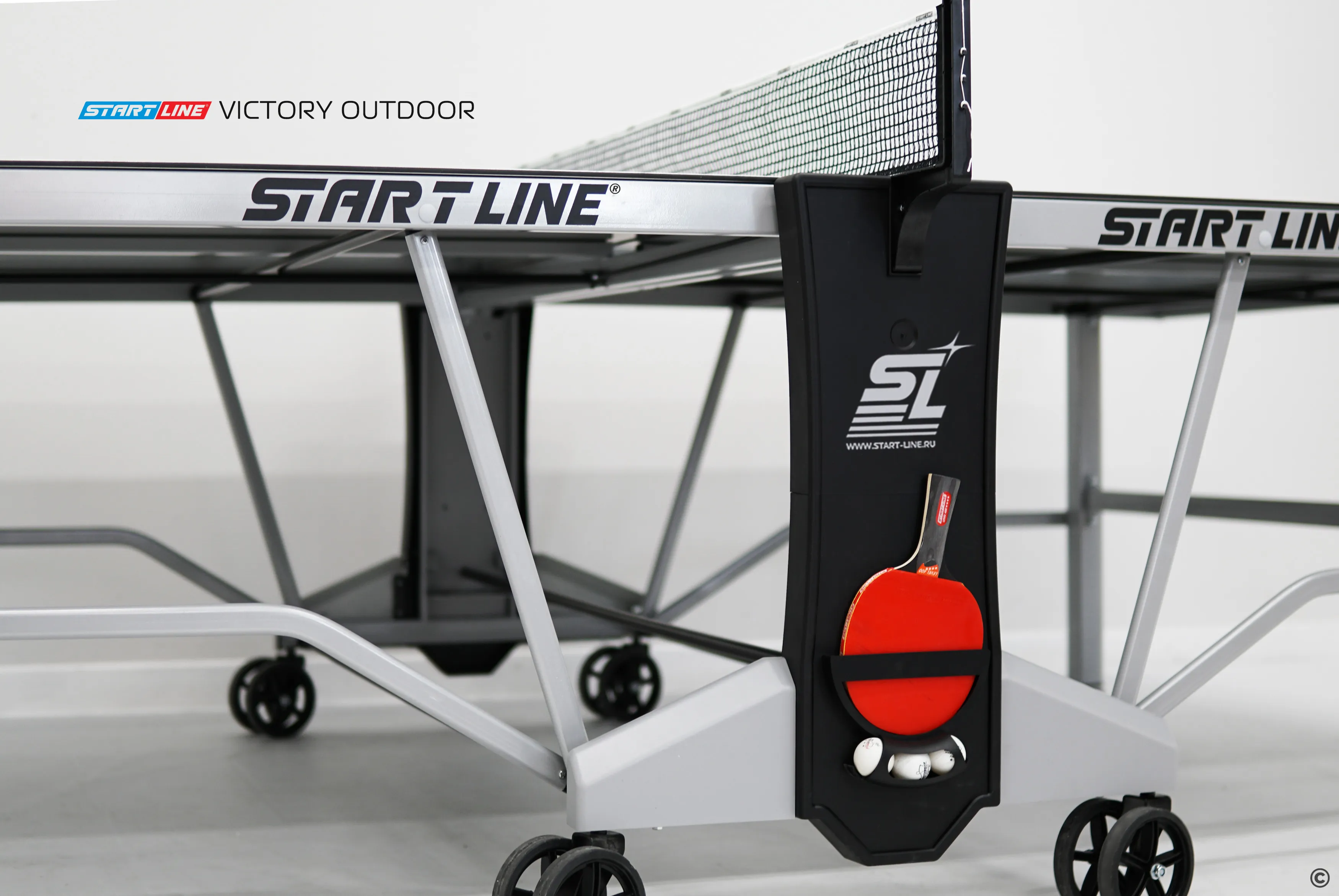 Комфортная система складывания стола является собственной разработкой Start Line. Она предусматривает усовершенствованный механизм, позволяющий быстро и надежно закрепить положение стола как в разложенном, так и в сложенном виде. Все манипуляции производятся с рабочего места игрока для каждой из столешниц. С такой системой складывания легко справляется один человек, а стол при хранении занимает минимум пространства. Конструкция предусматривает дополнительную фиксацию в сложенном виде для безопасной транспортировки стола, а также возможность одиночной игры.